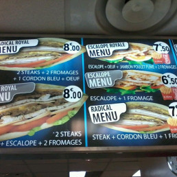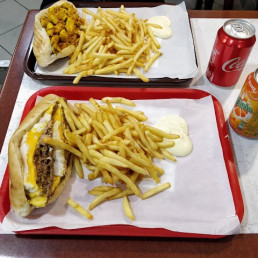 - Don't forget to try their Quadruple Steak sandwich with four steaks, cheddar cheese, and smoked chicken ham, served with crispy fries.